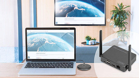 Die Präsentationslösungen von Digitus® helfen Ihnen dabei, Inhalte in einem Meeting zu teilen und gemeinsam an einem Projekt zu arbeiten. Mit dem Wireless Collaboration System können bis zu 30 Teilnehmer mit dem Empfänger verbunden werden - bis zu 4 Teilnehmer können sogar zeitgleich im Split Screen präsentieren.