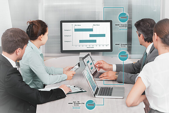 Mit den Präsentationslösungen von Digitus® können Sie auch in Ihrem Büro Inhalte von einem Monitor auf den anderen übertragen. Teilen Sie ganz einfach Ihren Bildschirm mit Ihren Kollegen und präsentieren Sie Ihre Ergebnisse. Echtes Plug & Play - Einstecken und los geht´s.