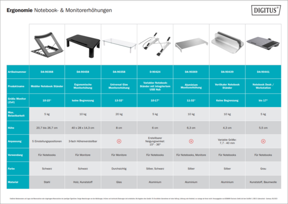 Laden Sie sich hier die Produktmatrix der jeweiligen Produktgruppe direkt als PDF herunter. Diese finden Sie darüber hinaus im Downloadbereich der jeweiligen Artikeldetailseite in unserem Webshop. Mehr zu unseren Produkten und unserem Portfolio finden Sie hier.